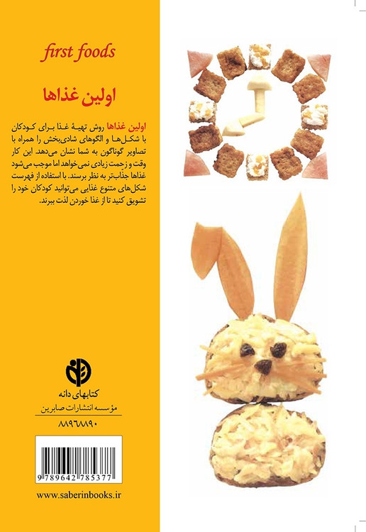 بیتردید رژیم غذایی کودک مهم است. زیرا قبل از همه، غذاها و مزهها واحدهای ساختمانی سازنده را برای رژیم غذایی و سلامت انسان در طول عمر او شکل میدهند. با وجود این، نباید در مورد آنچه کودک شما میخورد، وسواس داشته باشید. اگر در این مورد نگران باشید، مواقع صرف غذا برایتان آزاردهنده خواهد شد. به یاد داشته باشید که کودکان تا حد زیادی غریزی عمل میکنند. بنابراین سعی کنید انعطاف داشته باشید و بگذارید کودک، راهنمایتان باشد. این کتاب شامل ایدههای بسیار جالب برای غذا دادن به کودکان از نه ماهگی به بعد است. اولین غذاها روش تهیهٔ غذا برای کودکان با شکلها و الگوهای شادی بخش را همراه با تصاویر گوناگون به شما نشان میدهد. این کار وقت و زحمت زیادی نمیخواهد، اما موجب میشود غذاها جذابتر به نظر برسند. با استفاده از فهرست شکلهای متنوع غذایی میتوانید کودکان خود را تشویق کنید تا از غذا خوردن لذت ببرند.